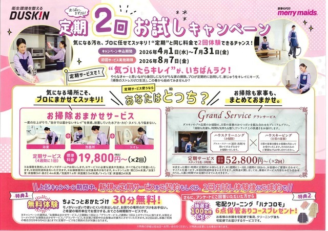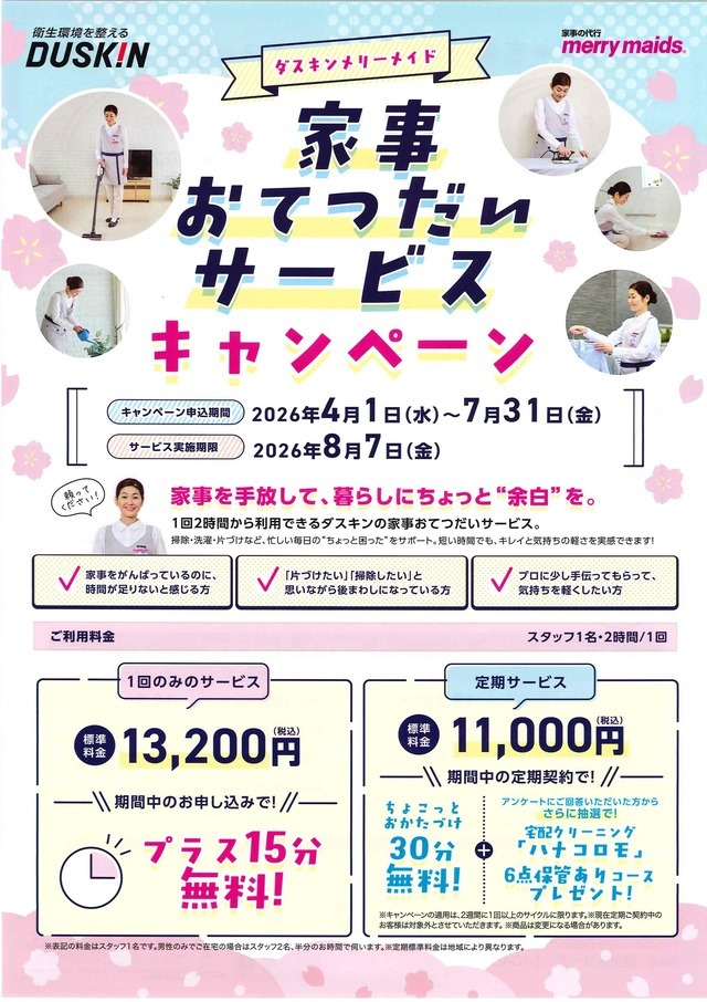 武蔵野・三鷹・杉並にお住まいの方、お掃除関係のみダスキン吉祥寺本町にてお伺いさせていただいております。