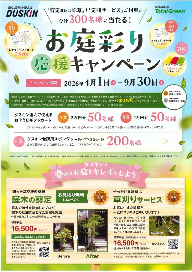 エアコンクリーニング・ハウスクリーニング・家事代行・庭木の管理・剪定 ・害虫獣駆除 お見積り無料です。お気軽にご相談・お問い合わせください。